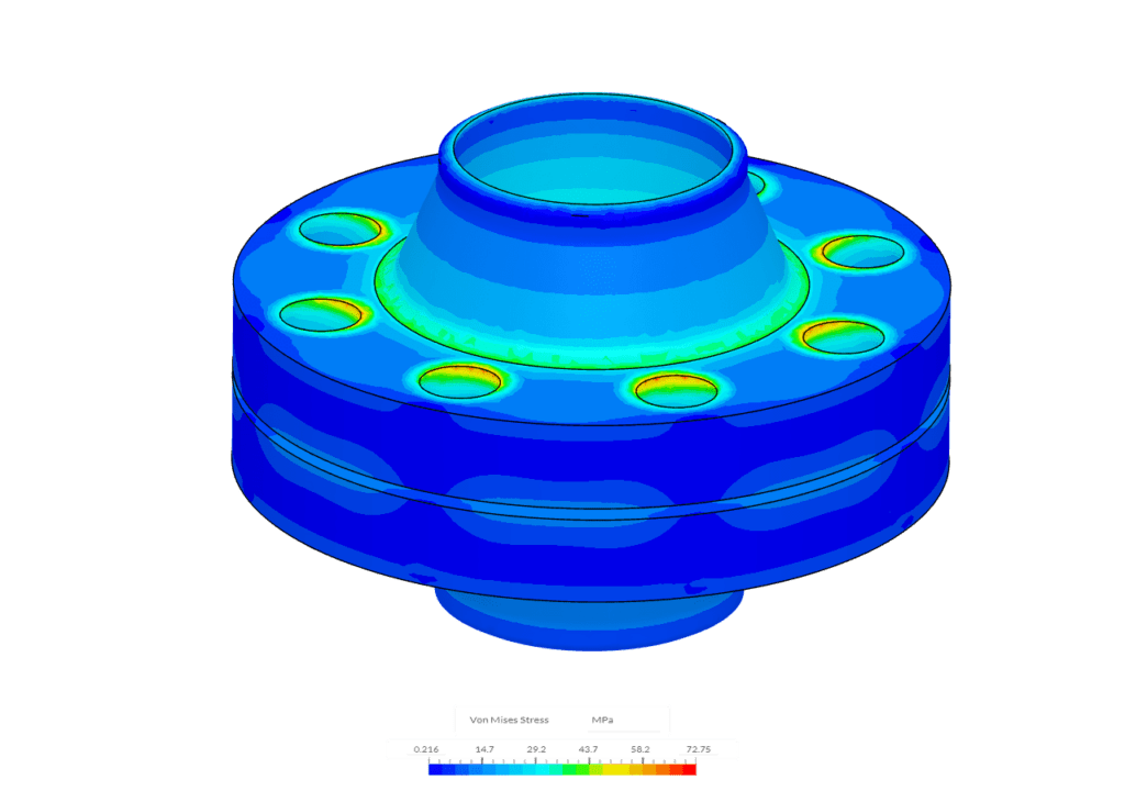 この機能の使い方を説明するために、ボルトの予圧がかかったパイプフランジの例を取り上げます。参考までに、図 3 にこのような接続がどのようになるかを示します。
