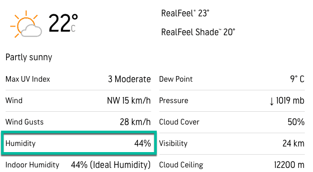 例えば、空気が所定の温度にあり、相対湿度が50%である場合、空気中の水分含有量が飽和点のちょうど半分であることを意味します。