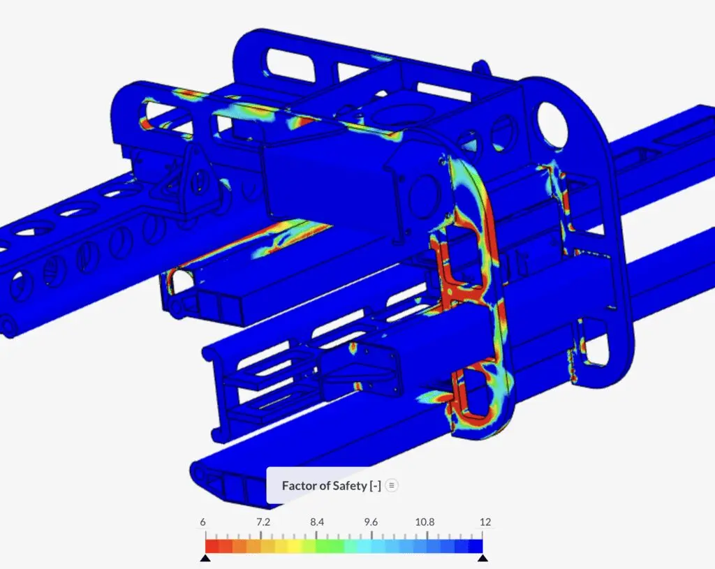 図2: 構造解析で得られた応力から安全率を算出して可視化した様子