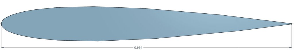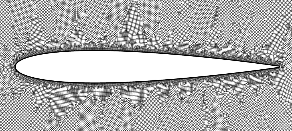 NACA 0012は、最大翼厚が翼弦長の12%で、キャンバーのない対称4桁翼型です。形状は解析的に定義されており、滑らかで良好な表面形状のため、数値解析に非常に適しています。この場合、弦長は≈1.0に設定されます。、これは参考文献と一致しています。