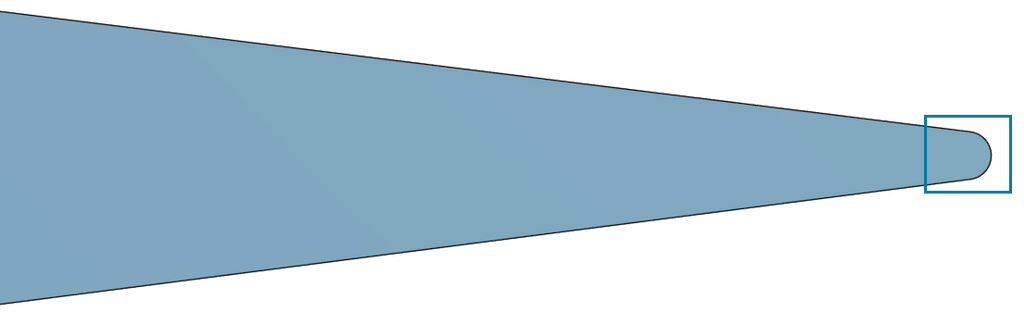 翼の後縁は、境界層のメッシュを改善し、鋭いエッジの近くに階段状の要素が形成されるのを避けるために、小さな面取りを追加することによって簡素化しました。